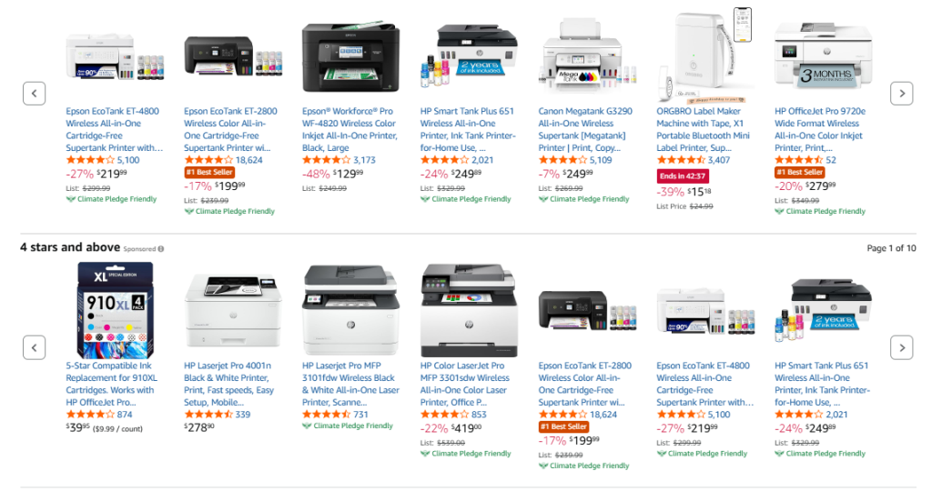 Canon PIXMA and Epson EcoTank are rivals. EcoTank uses refill bottles. HP uses Instant Ink, which keeps costs steady.